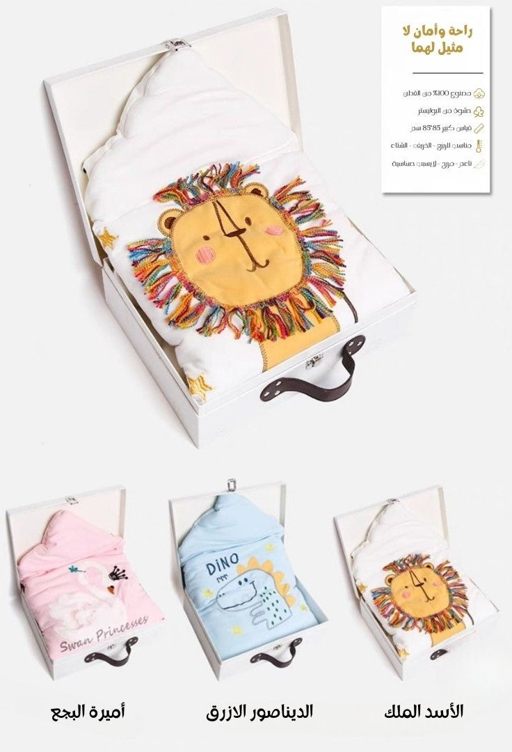بطانية بيبي قطنية تصميم الأسد الملك - صندوق هدايا مواليد Dorado Bee.